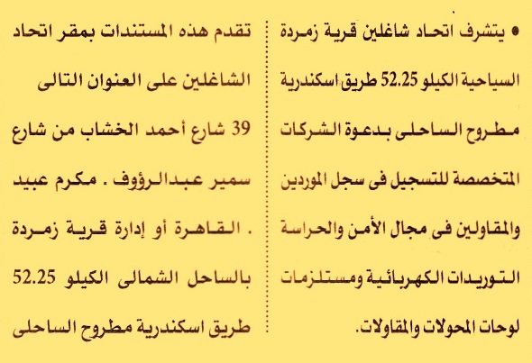 HOT Information فتح باب القيد في سجل الموردين والمقاولين في مجال الأمن والحراسة والتوريدات الكهربائية ومستلزمات لوحات المحولات والمقاولات عن جريدة الأهرام Post navigation جمعية عايش الخيرية الشركة العربية للأدوية والنباتات الطبية