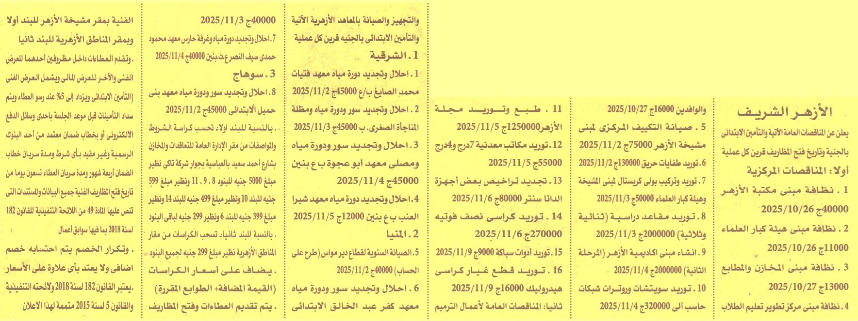 ومدة سريان العطاءات 3 أشهر)