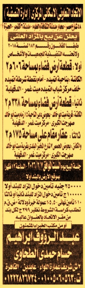 (2) قطعة أرض فضاء بمساحة 338م2 بقرية ميت أبو خالد – حوض داير الناحية 15 – زمام ميت أبو خالد – صهرجت الكبرى – مركز ميت غمر – الدقهلية