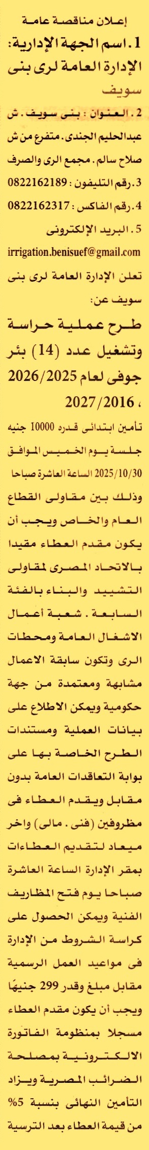 (فئة التصنيف السابعة شعبة أشغال عامة ومحطات الري ويرفق مع المستندات سابقة أعمال)