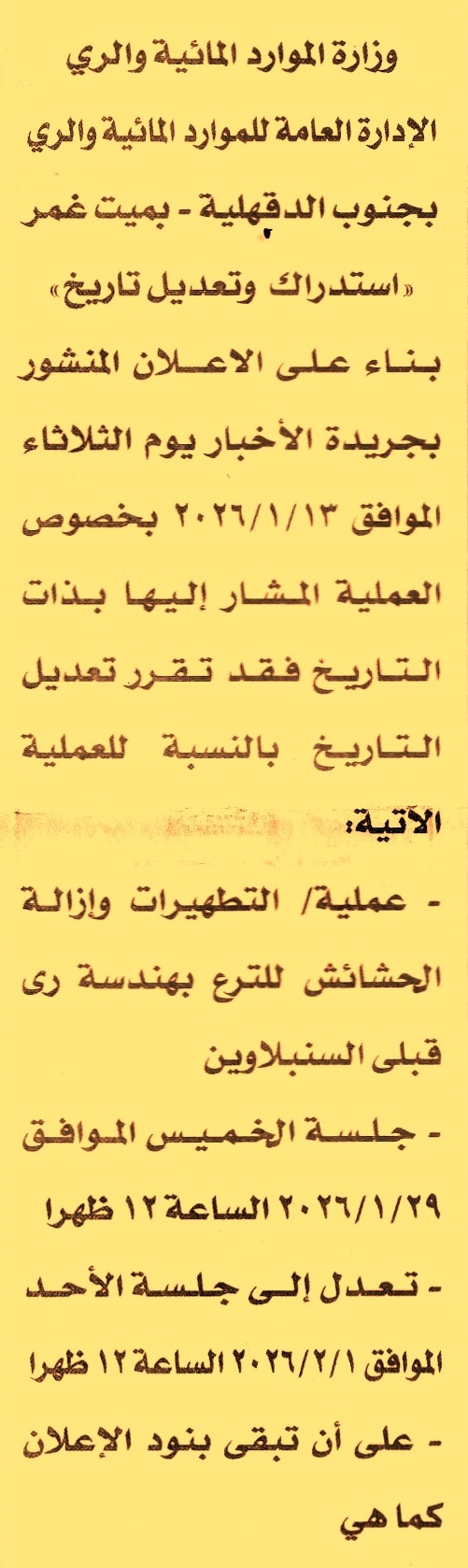 بدلا من يوم 29/1/2026