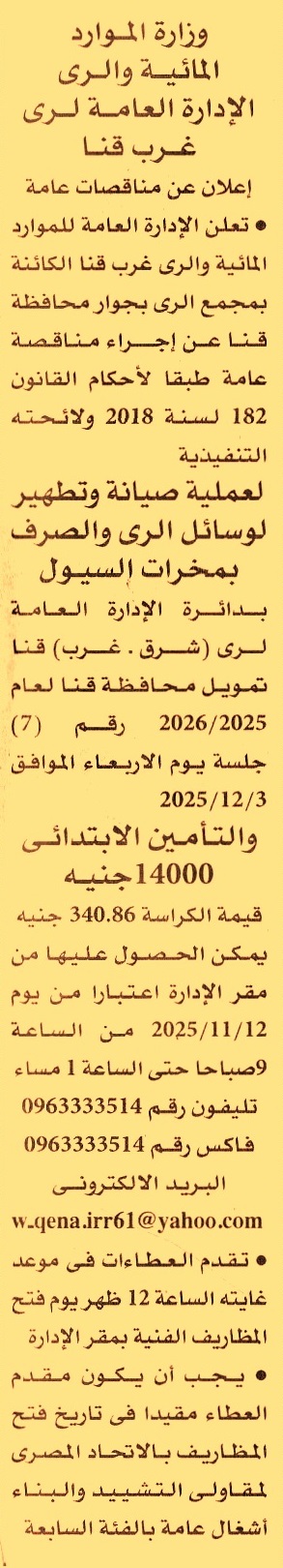 بدائرة الإدارة العامة لري شرق وغرب قنا
