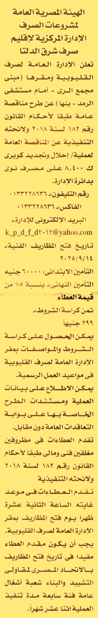 HOT Information مناقصة عامة لعملية إحلال وتجديد كوبري ك 8.400 على مصرف نوى بدائرة الإدارة مدة تنفيذ العملية 12 شهور (فئة التصنيف السابعة شعبة أشغال عامة) عن جريدة الجمهورية Post navigation الشركة الإسلامية للثروة الحيوانية البنك العقاري المصري العربي