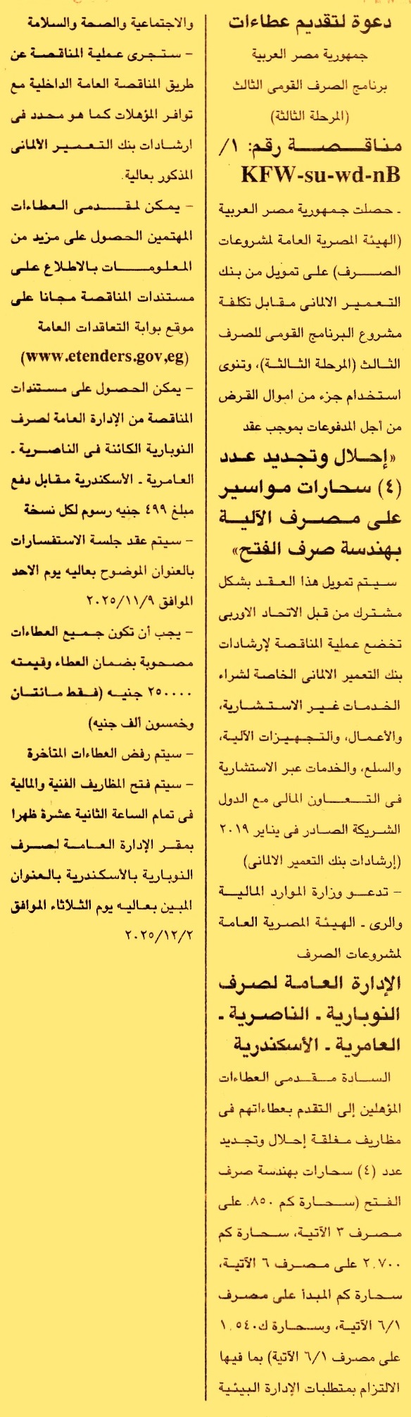 والعملية تابعة لبرنامج الصرف القومي الثالث “المرحلة الثالثة” بتمويل من بنك التعمير الألماني