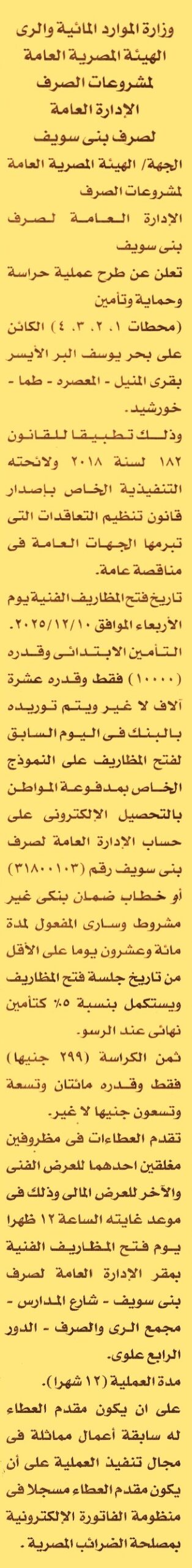 (يتم توريد التأمين بالبنك في اليوم السابق لفتح المظاريف على النموذج الخاص بمدفوعة المواطن بالتحصيل الإلكتروني على حساب الإدارة العامة لصرف بني سويف رقم 31800103