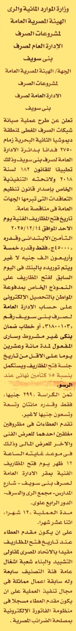 (يتم توريد التأمين بالبنك في اليوم السابق لفتح المظاريف على النموذج الخاص بمدفوعة المواطن بالتحصيل الإلكتروني على حساب الإدارة العامة لصرف بني سويف رقم 31800103
