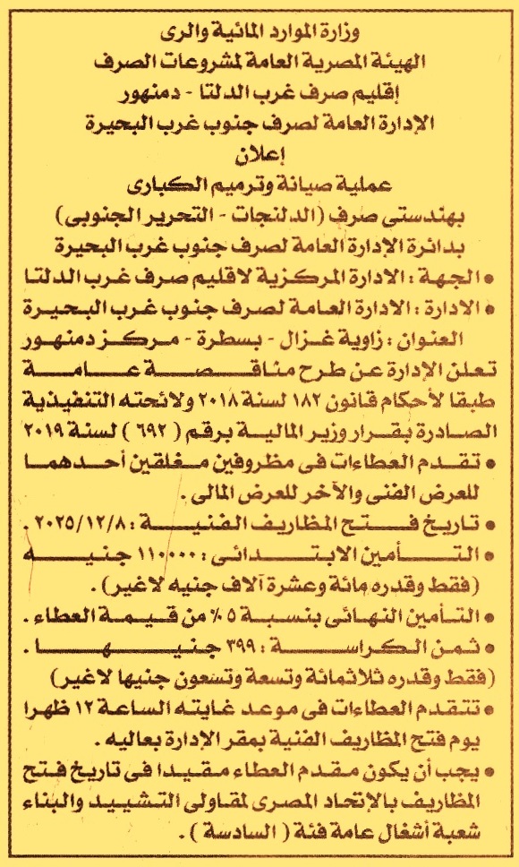 صيانة وترميم الكباري بهندستي صرف “الدلنجات, التحرير الجنوبي”