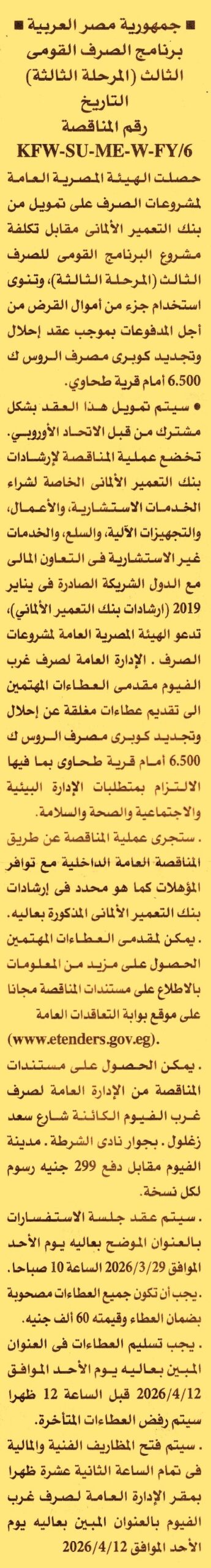 والعملية تابعة لبرنامج الصرف القومي الثالث “المرحلة الثالثة” بتمويل من بنك التعمير الألماني