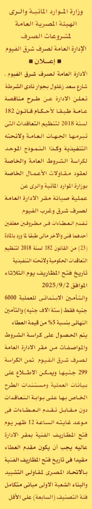 صيانة مقر الإدارة العامة لصرف شرق وغرب الفيوم