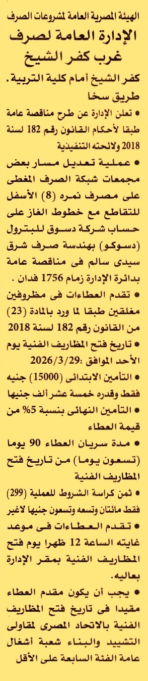 (فئة التصنيف السابعة شعبة أشغال عامة ومدة سريان العطاءات 3 أشهر)