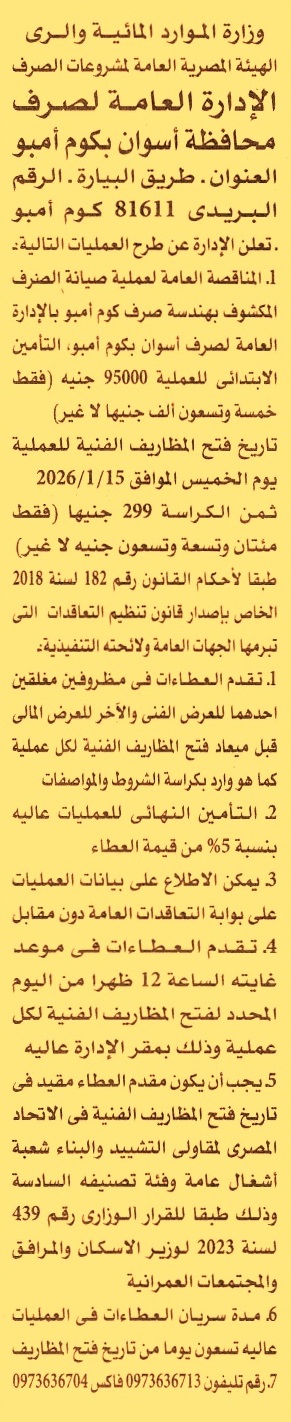 (فئة التصنيف السادسة شعبة أشغال عامة ومدة سريان العطاءات 3 أشهر)