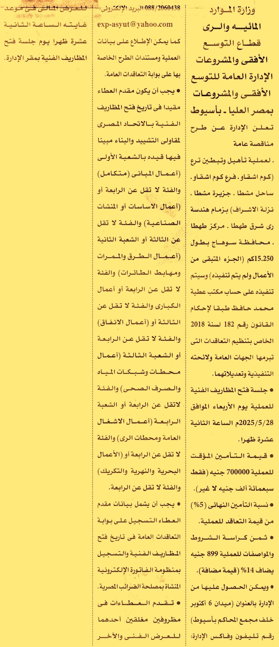 مناقصة عامة لعملية