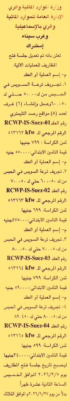 تعلن الإدارة عن تعديل جلسة فتح المظاريف للعمليات الأتية