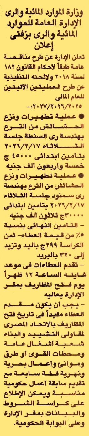تطهيرات ونزع الحشائش من الترع