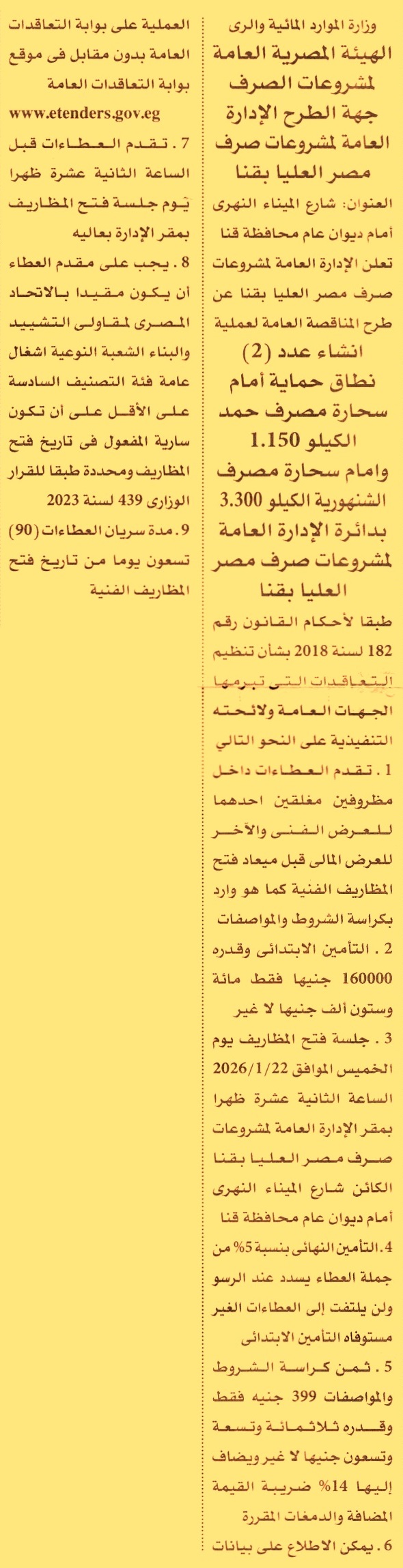 (فئة التصنيف السادسة شعبة أشغال عامة ومدة سريان العطاءات 3 أشهر)