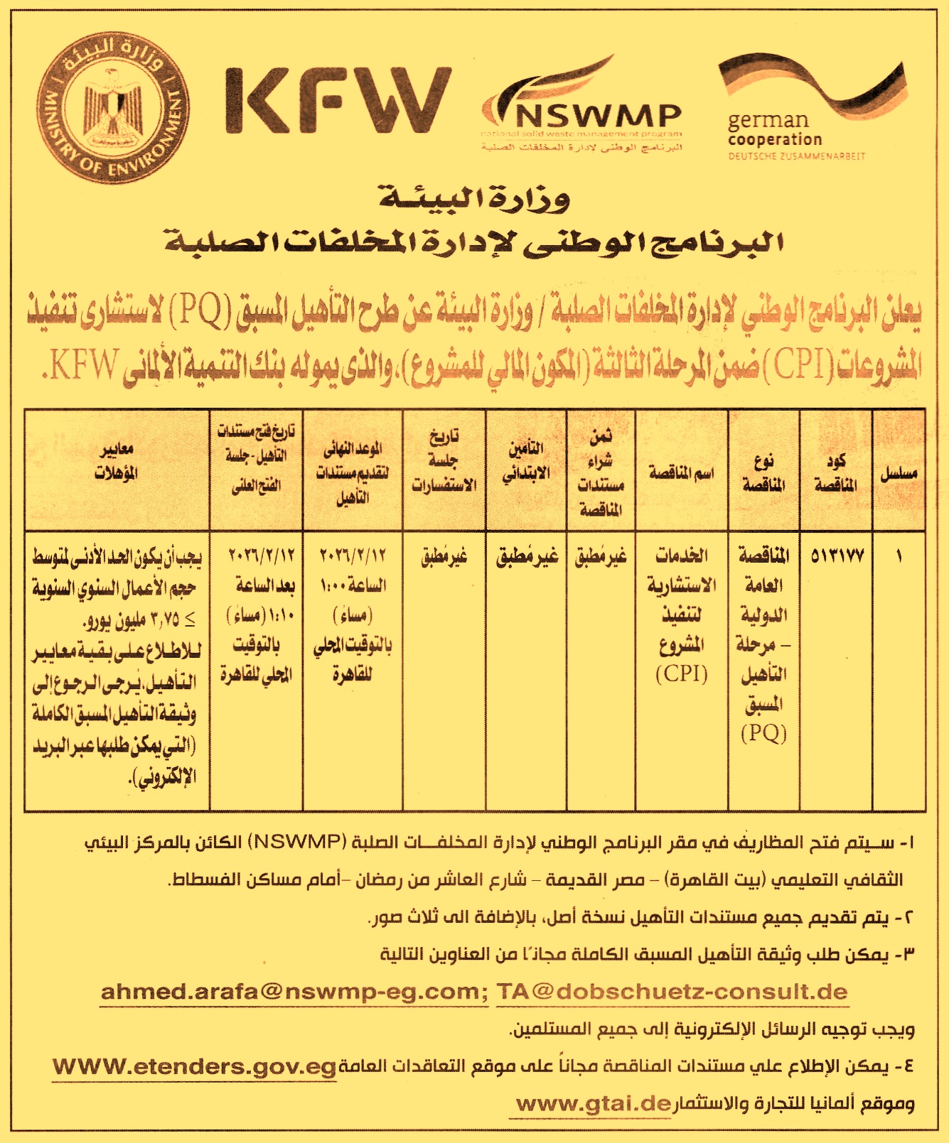 مرحلة التأهيل المسبق لتقديم الخدمات الاستشارية لتنفيذ المشروع “CPI”