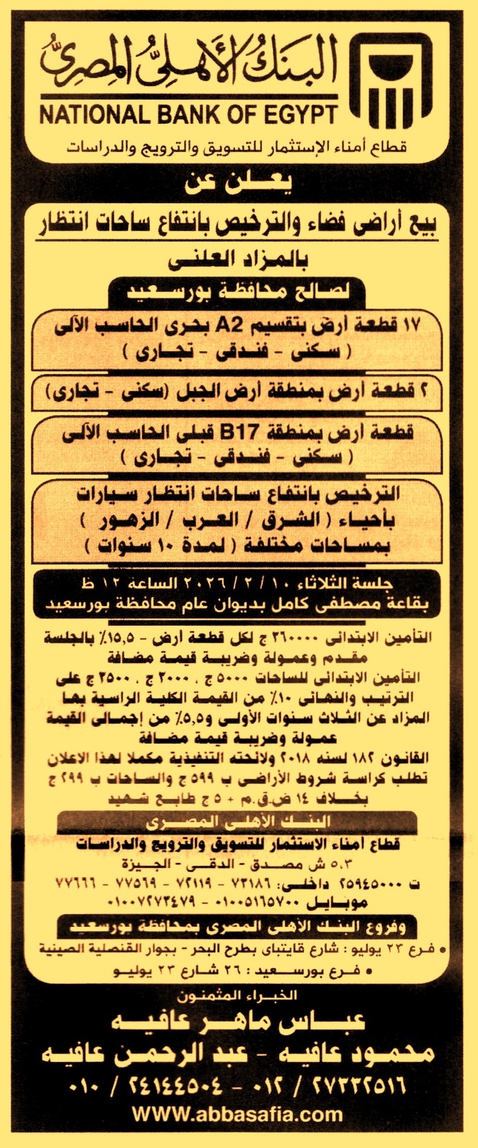 وقطعة أرض بمنطقة B17 قبلي الحاسب الألي “سكني, فندقي, تجاري”