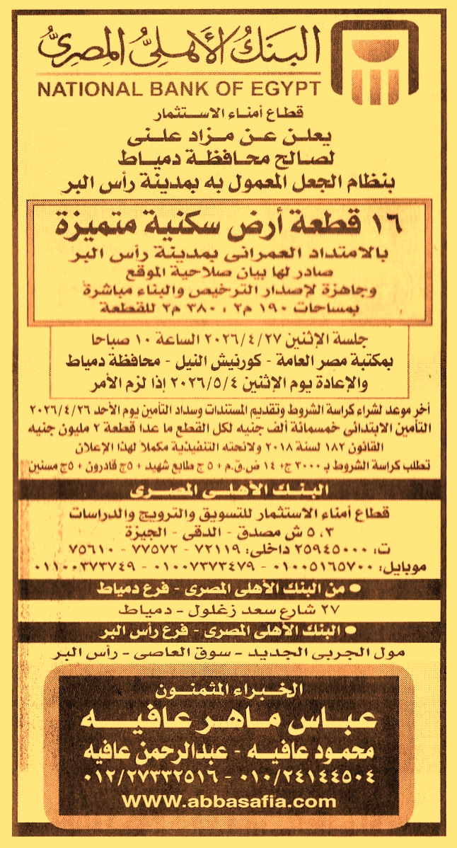 وتعاد الجلسة يوم 4/5/2026 في حالة عدم الرسو)