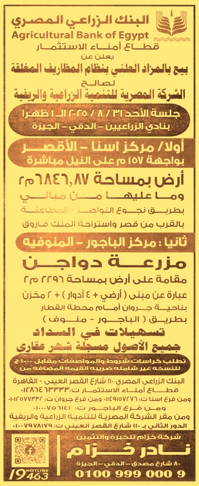 أرض بمساحة 6846.87م2 وما عليها من مباني