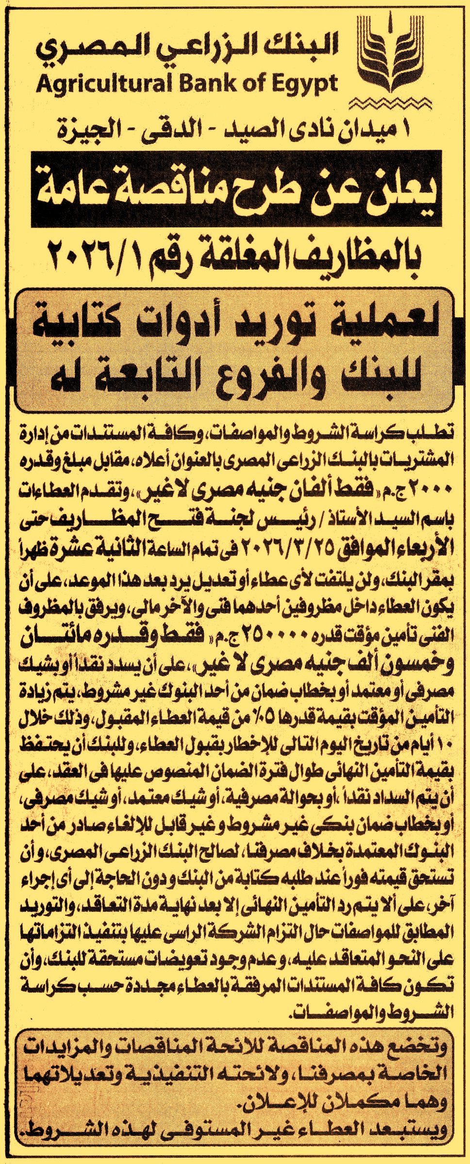 توريد أدوات كتابية للبنك والفروع التابعة به