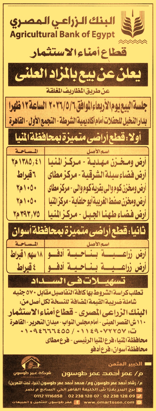(4) أرض ومخزن صفط الغربية أبو حلفاية – مركز المنيا بمساحة 1050م2
