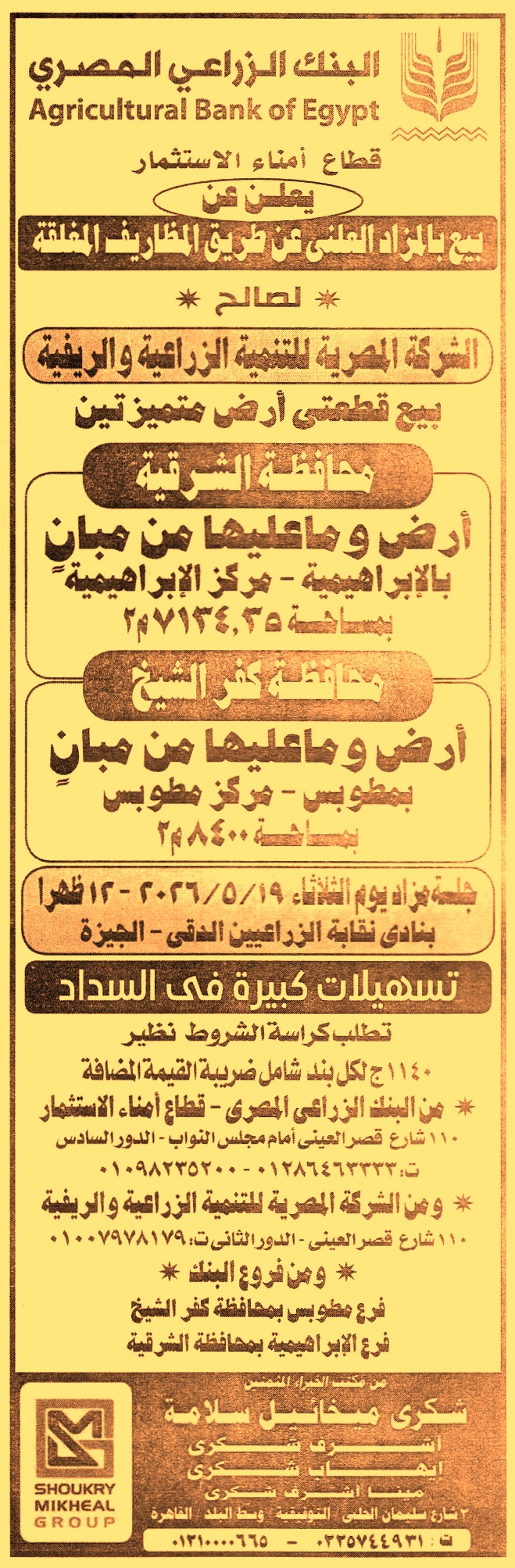 (1) أرض وما عليها من مبان بمساحة 7134.35م2 بالإبراهيمية – مركز الإبراهيمية – محافظة الشرقية