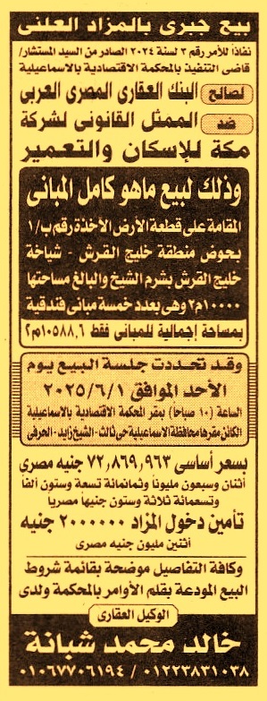 بيع ما هو كامل المباني المقامة على قطعة الأرض الأخذة رقم ب/1