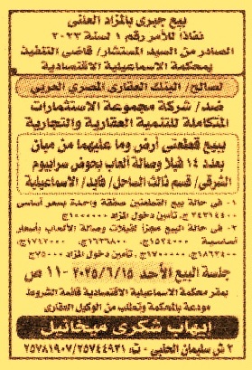 وفي حالة البيع مجزأ لفيلات وصالة الألعاب