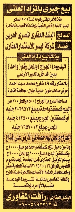 أو 412.500ج للجراج و1.657.012ج للمحل كصفقات مجزأة