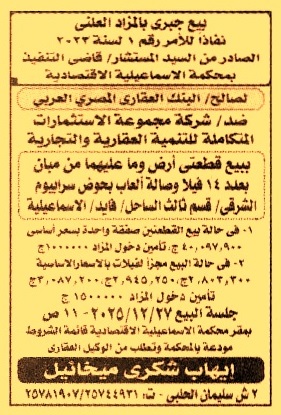 وفي حالة البيع مجزأ لفيلات