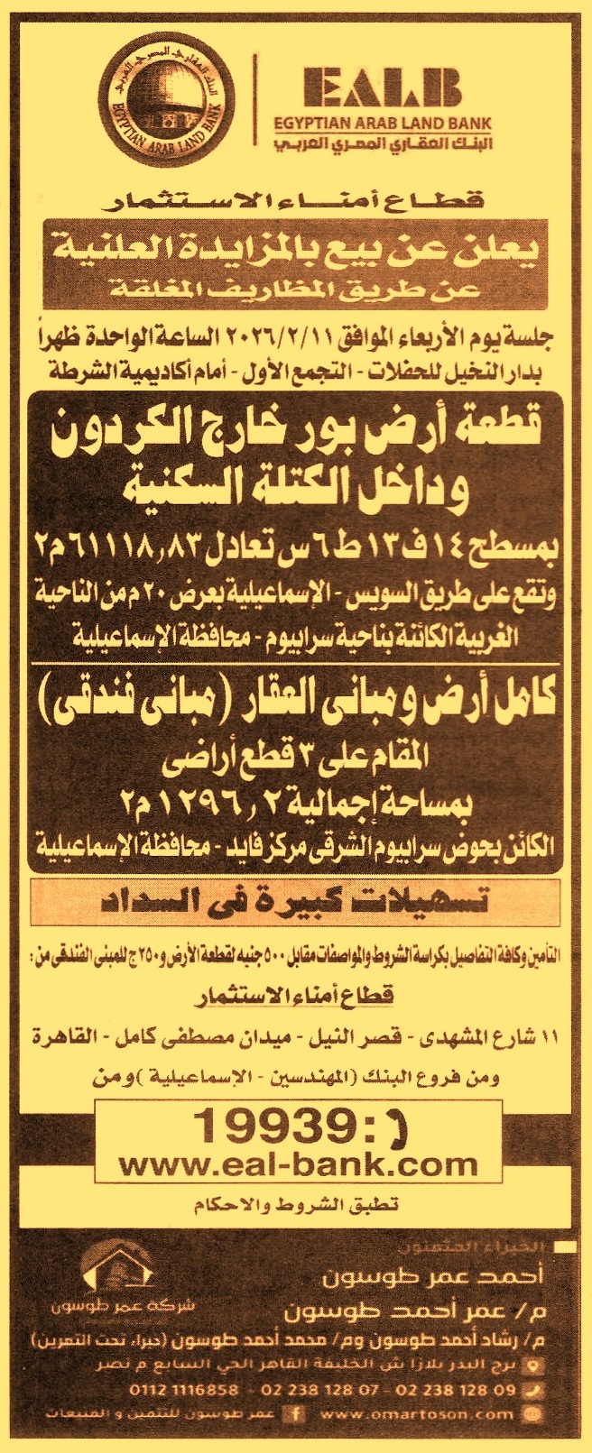 الكائن بحوض سرابيوم الشرقي – مركز فايد – محافظة الإسماعيلية