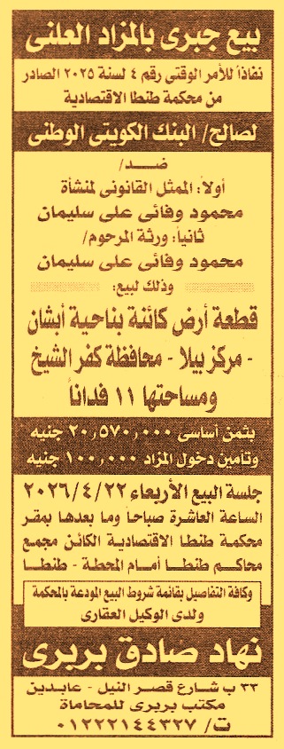 كائنة بناحية أبشان – مركز بيلا – محافظة كفر الشيخ