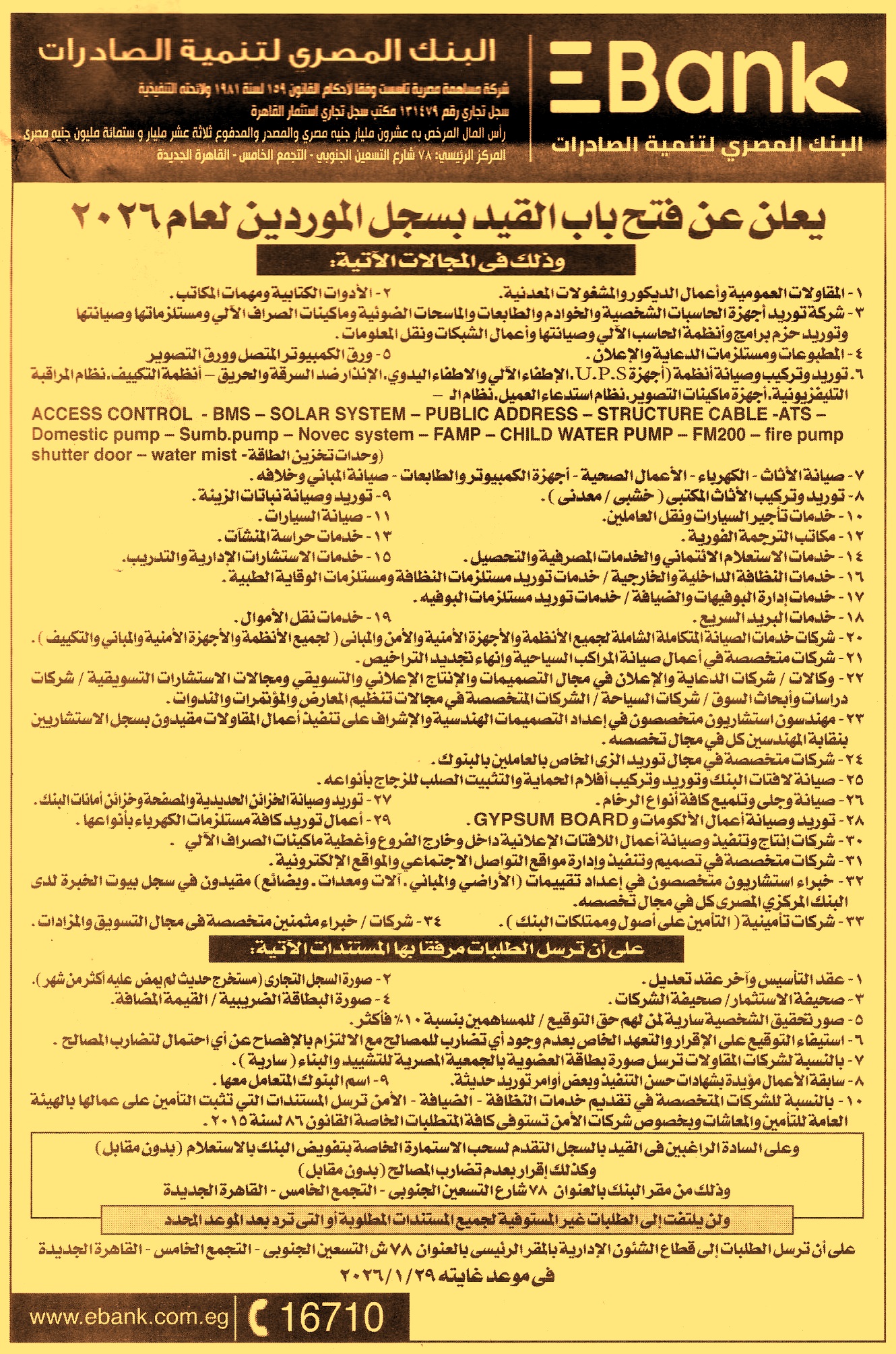 فتح باب القيد بسجل الموردين لعام ٢٠٢٦