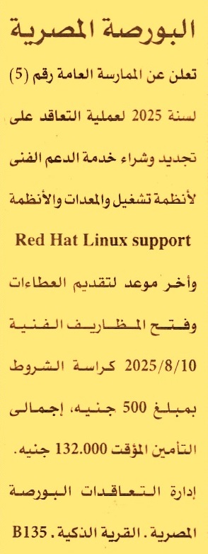 تجديد وشراء خدمة الدعم الفني لأنظمة تشغيل والمعدات والأنظمة Red Hat Linux support