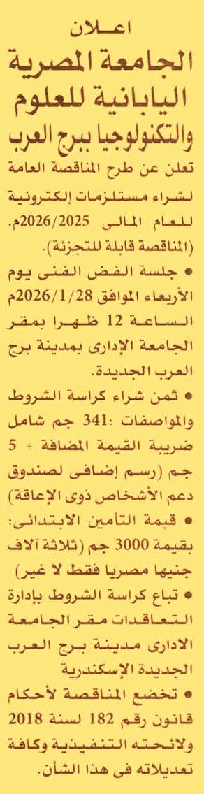 HOT information ممارسة عامة لعملية توريد مستلزمات إلكترونية (العملية قابلة للتجزئة) عن جريدة الأهرام Post navigation الهيئة القومية لسكك حديد مصر جامعة القاهرة الإدارة العامة للمشتريات والمخازن
