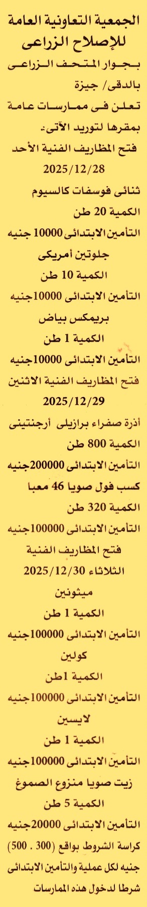 HOT Information ممارسة عامة لعملية توريد الأتي (1) 20 طن ثنائي فوسفات كالسيوم مستورد (2) 10 طن جلوتين أمريكي (3) 1 طن بريمكس مستورد عن جريدة الأهرام Post navigation وزارة الزراعة جهاز تنمية مدينة العاصمة الإدارية الجديدة