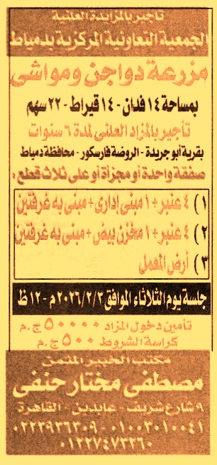 تأجير مزرعة دواجن ومواشي بمساحة 14ف 14ط 22س