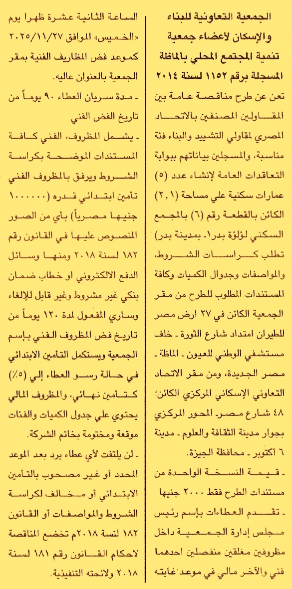إنشاء عدد 5 عمارات سكنية على مساحة 1, 2