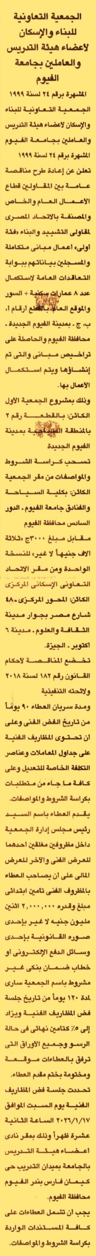 بمشروع الجمعية الأول بالقطعة رقم 2 – المنطقة السياحية – مدينة الفيوم الجديدة