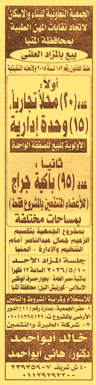 بمشروع الجمعية بتقسيم الزعيم جمال عبد الناصر أمام التنظيم والإدارة – المنيا