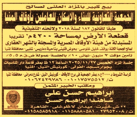 الكائنة بوقف خليل خلوصي – بحوض قليني – ناحية دماريس – شلبي – محافظة المنيا
