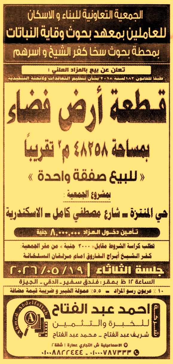 بيع قطعة أرض فضاء بمساحة 48258م2 تقريبا “صفقة واحدة”
