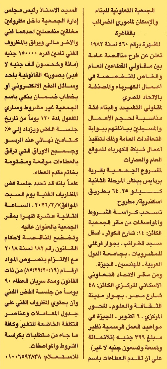 HOT information مناقصة عامة لعملية تنفيذ أعمال شبكة الكهرباء للموقع العام والعمارات لمشروع الجمعية بقرية بردايس بيتش المرحلة الثانية – كيلو 64.25 بطريق اسكندرية/ مطروح (مدة سريان خطاب الضمان 4 أشهر ومدة سريان العطاءات 3 أشهر) عن جريدة الجمهورية Post navigation جهاز تنمية مدينة القاهرة الجديدة الشركة الوطنية لخدمات الملاحة الجوية