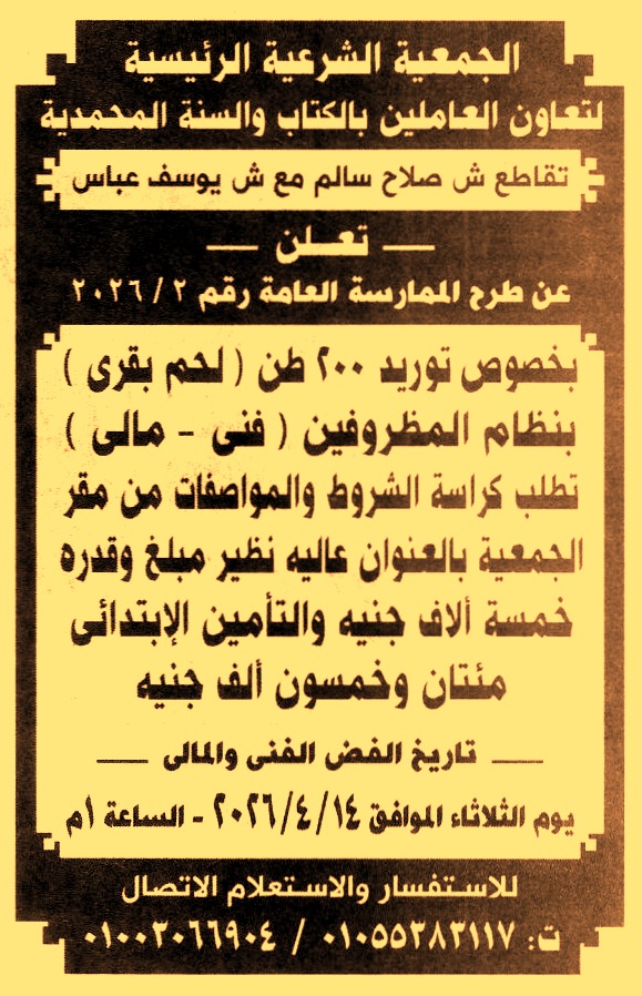 توريد 200 طن لحم بقري