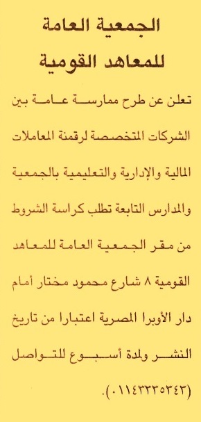 (تباع الكراسة لمدة أسبوع من تاريخ الإعلان)