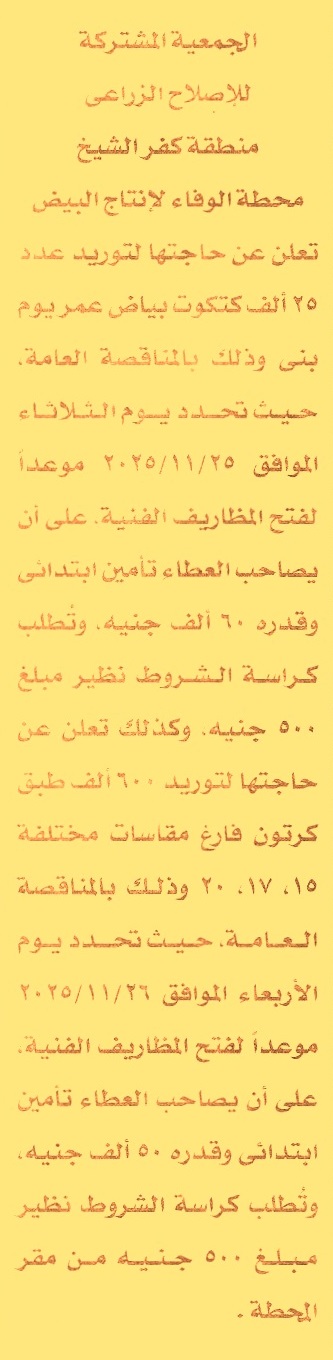 HOT Information ممارسة عامة لعملية توريد عدد 25 ألف كتكوت بياض عمر يوم بني لمحطة الوفاء لإنتاج البيض عن جريدة الجمهورية Post navigation جامعة المنوفية وزارة الأوقاف