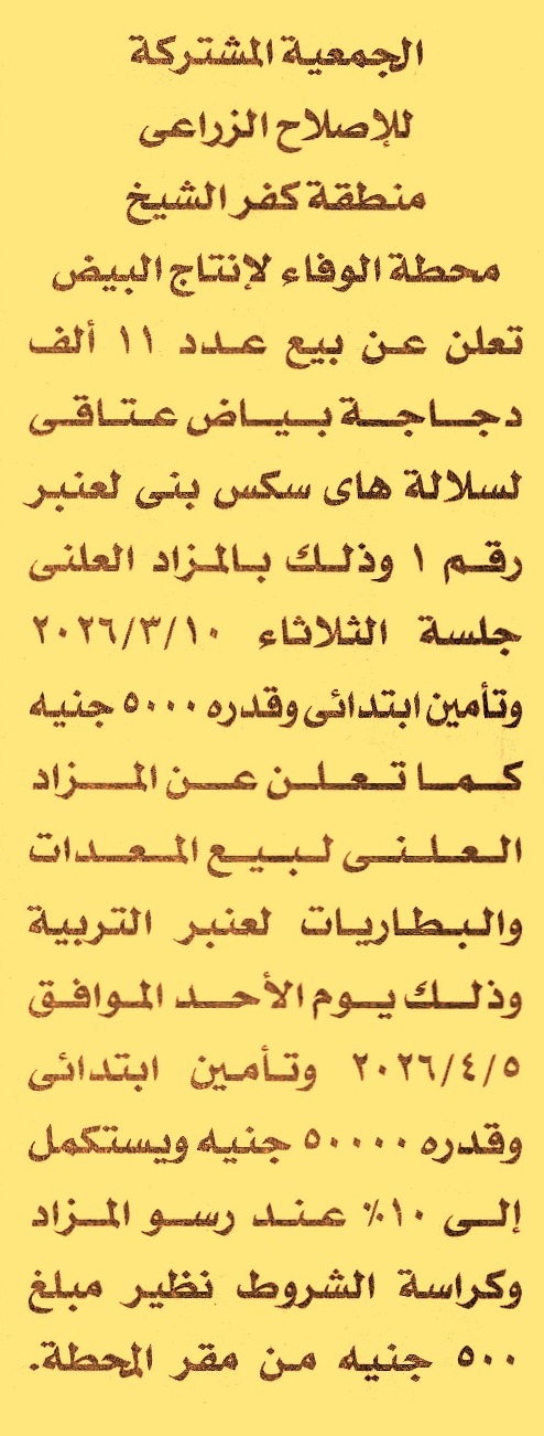 HOT information مزايدة علنية لعملية بيع عدد 11 ألف دجاجة بياض عتاقي لسلالة هاي سكس بني لعنبر رقم 1 عن جريدة الأخبار Post navigation الهيئة العامة للأبنية التعليمية الإدارة العامة لصرف شمال الشرقية