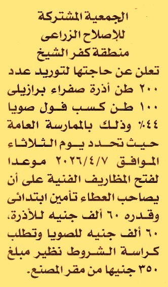 HOT Information ممارسة عامة لعملية توريد 200 طن أذرة صفراء برازيلي و100 طن كسب فول صويا 44% لمصنع علف ميت علوان عن جريدة الأخبار Post navigation شركة صان الحجر الزراعية هيئة النقل العام بالقاهرة