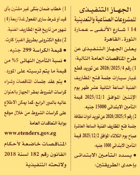 مناقصة عامة رقم 4/2025/2026 لعملية