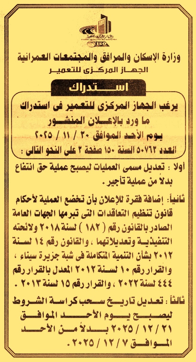 بخصوص الإعلان المنشور يوم 30/11/2025